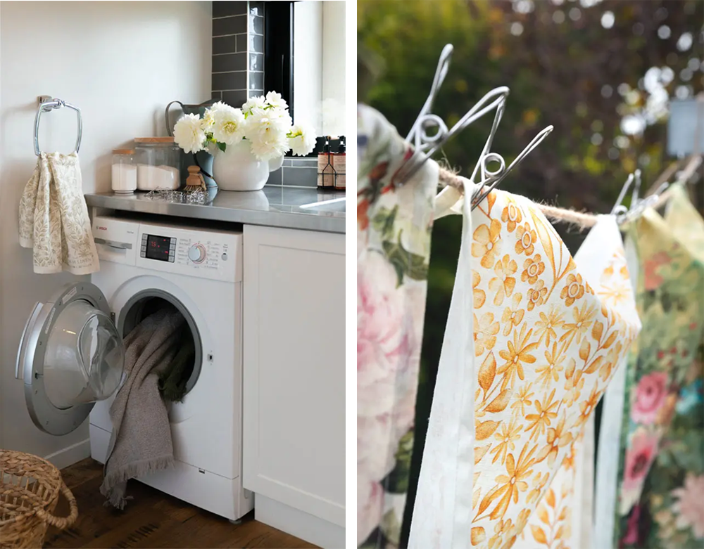If you live in a fresh air environment, line drying reduces wrinkles in your sheets and duvet covers, uses less energy and freshens the fibres. Take care to keep the fabrics out of the direct sunlight as much as possible, to reduce fading, keeping your duvet and pillow covers turned inside-out whilst drying.