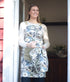 The Harriet apron, inspired by ditsy florals is large scale print mid century design with a modern sketched floral in classic navy, white and cumin. Features a dual patch pocket on the front with straps that cross over the back and loop through eyelets at the waist.