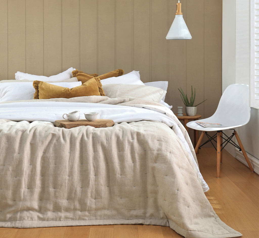 Botanical and floral prints hand-painted by our artists, digitally printed on beautiful 300 thread count cotton sateen are signature to the range. These are complemented by our stunning linen cotton bedspread sets, an alternative to our duvet sets or a great way to add comforting layers to your bed. Our Laundered Linen collection of pure European flax linen, pre-washed for softness, are a staff and customer favourite for a timelessly stylish plain option. Available in a curated collection of earthy colours in bedspread, duvet and sheet sets, as well as pillows and euros.